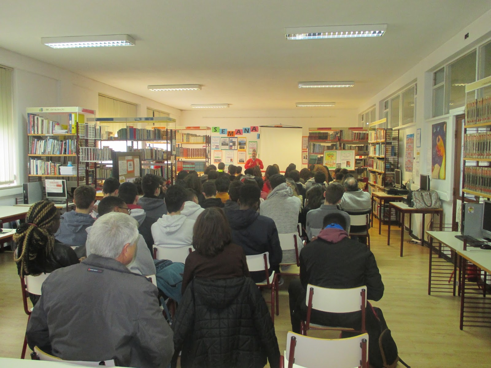 Assistiram 3 turmas de alunos do Ensino Básico, 2 turmas do Ensino Secundário e respetivos professores.